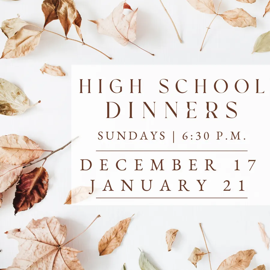 High School students are invited to join Natalie Davis off-campus one Sunday each month for dinner and conversation. This event is free for students to attend. If you would like to attend, please text or email Natalie for location information.