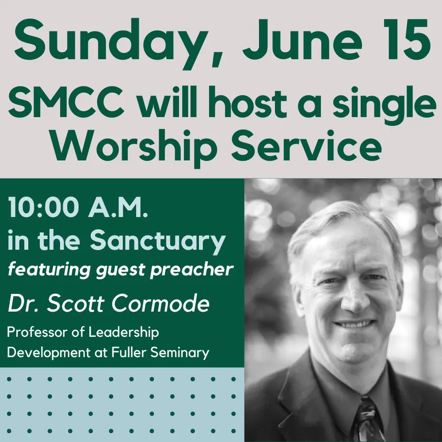 The our Clergy and much of our congregation will be in Carlsbad for the All Church Retreat on Sunday, June 15, SMCC will still host an on campus service with guest preacher Dr. Scott Cormode.
