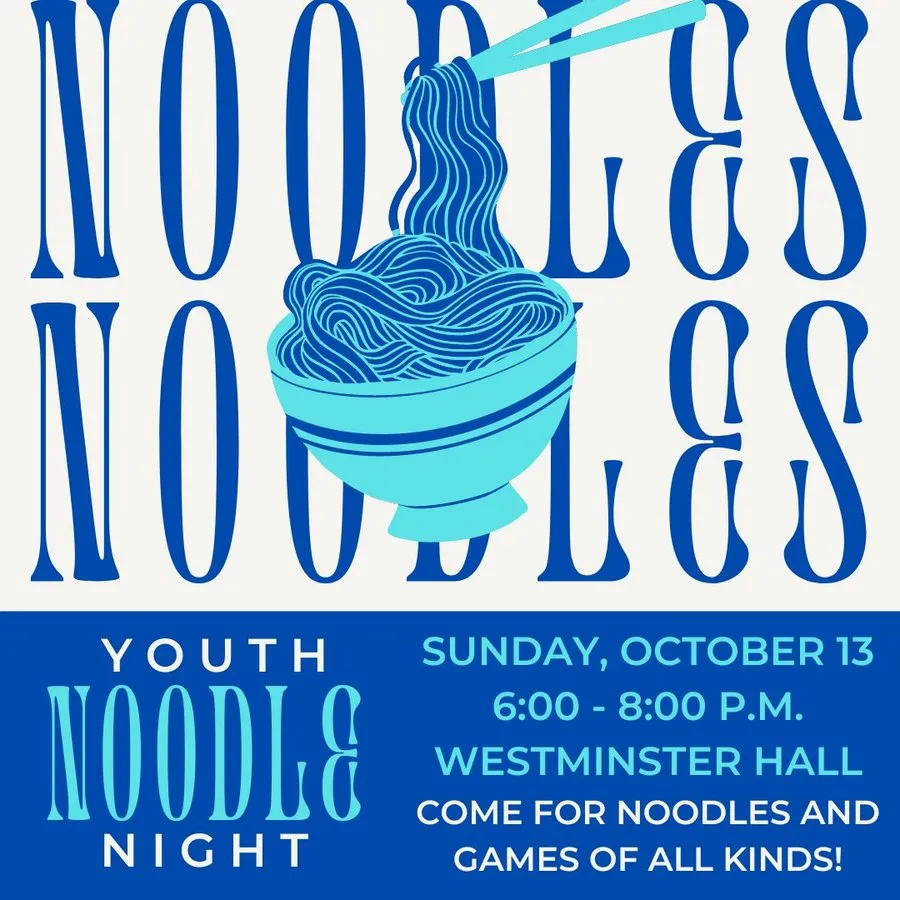 Stop by Westminster Hall between 6:00 - 8:00 P.M. for noodles and games of all kinds.