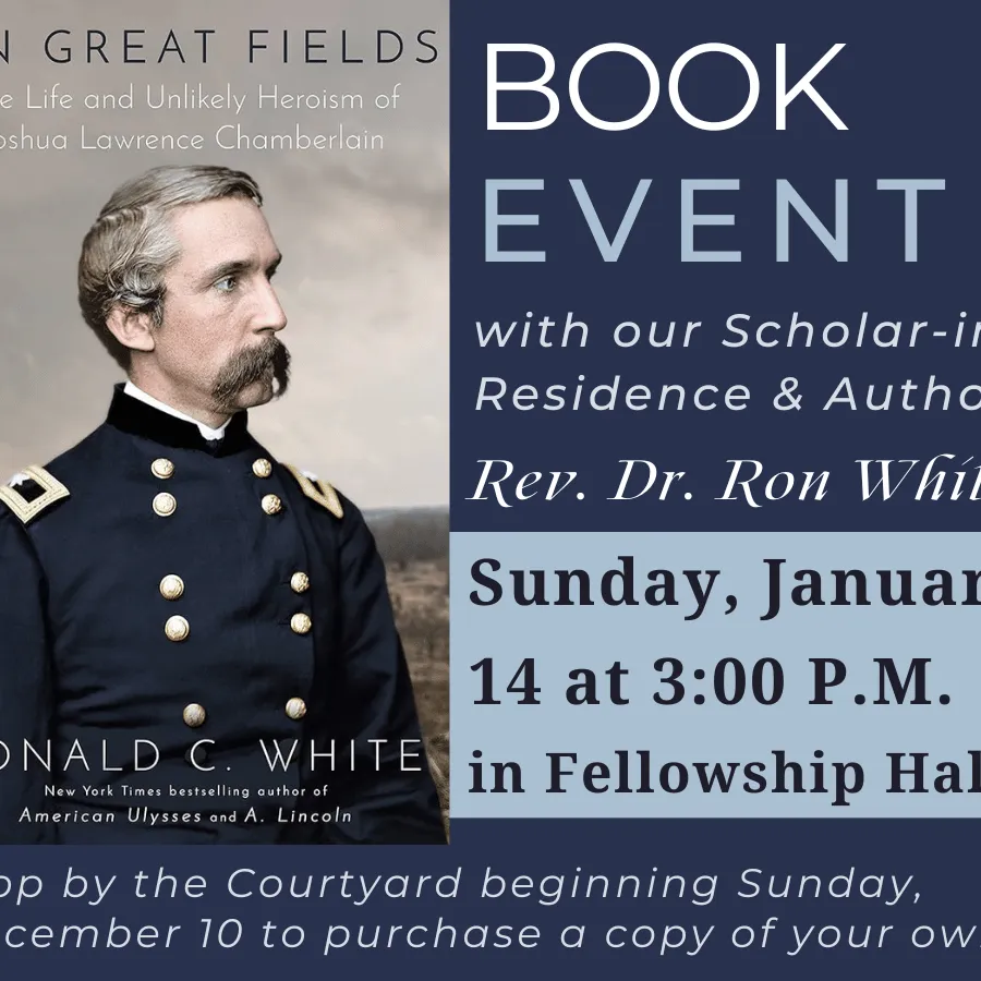 Rev. Dr. Ron White's latest work, On Great Fields: The Life and Unlikely Heroism of Joshua Lawrence Chamberlin is now available for purchase in the Church Office and in the Courtyard on Sundays.