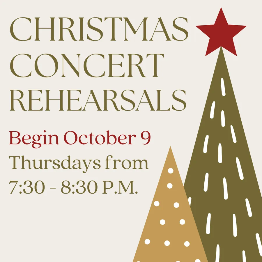 ALL are welcome to join our choir and sing in our annual Christmas Concert (scheduled for December 7, 2025). This year's concert will feature Vaughan William's Fantasia for Christmas Carols. No audition needed!