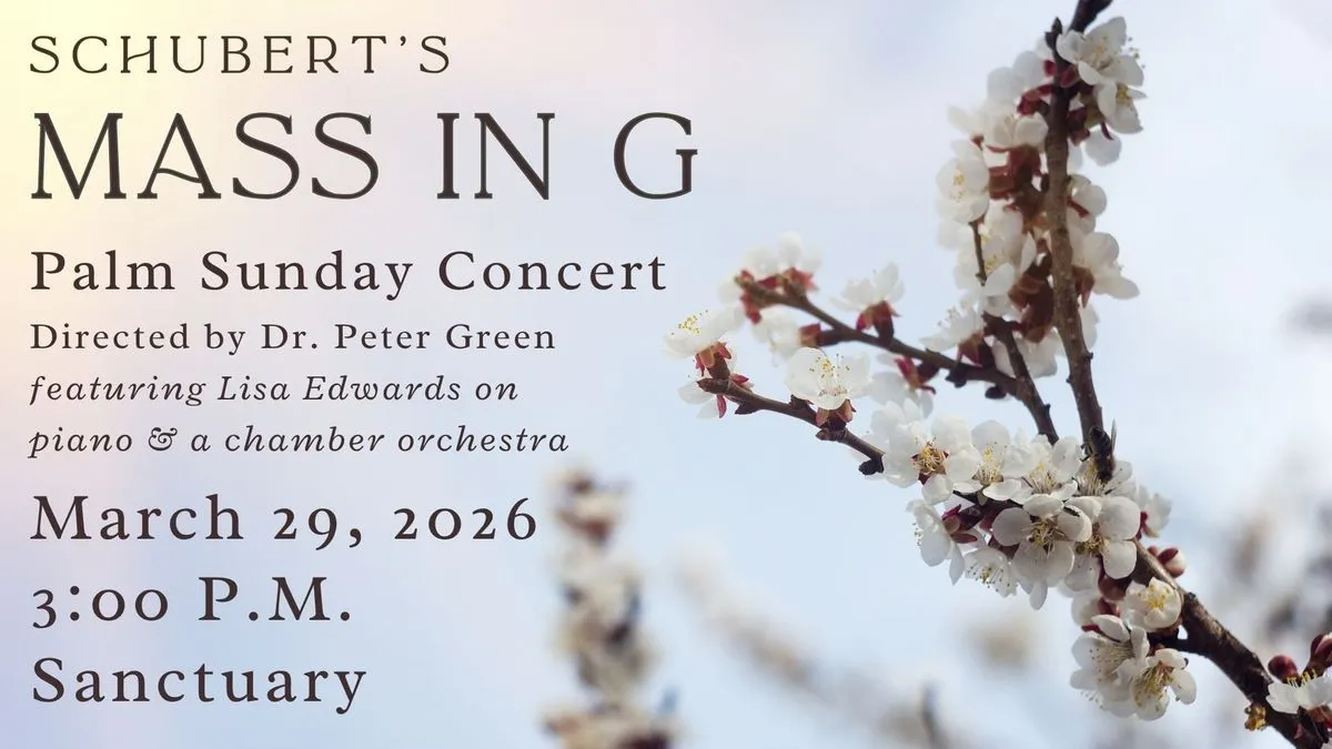 Watch the video of our Palm Sunday Choral Concert on March 29 at 3:00 P.M. in the Sanctuary. Directed by Dr. Peter Green, the Community Church Choir will be accompanied by Lisa Edwards on the piano/organ and a chamber orchestra. This year’s concert features Schubert’s Mass in G along with other seasonal numbers.